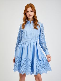 Modré dámske perforované košeľové šaty so zaväzovaním ORSAY