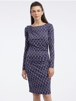 Tmavomodré dámske vzorované puzdrové šaty ORSAY